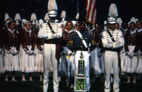 The funny thing is … I never even thought about color. The guy was a model Cadet. He was 6 feet tall and built like a wide receiver. He had the respect of the members, and, well… he was the guy for the job. He played mellophone the year prior, and he deserved the position